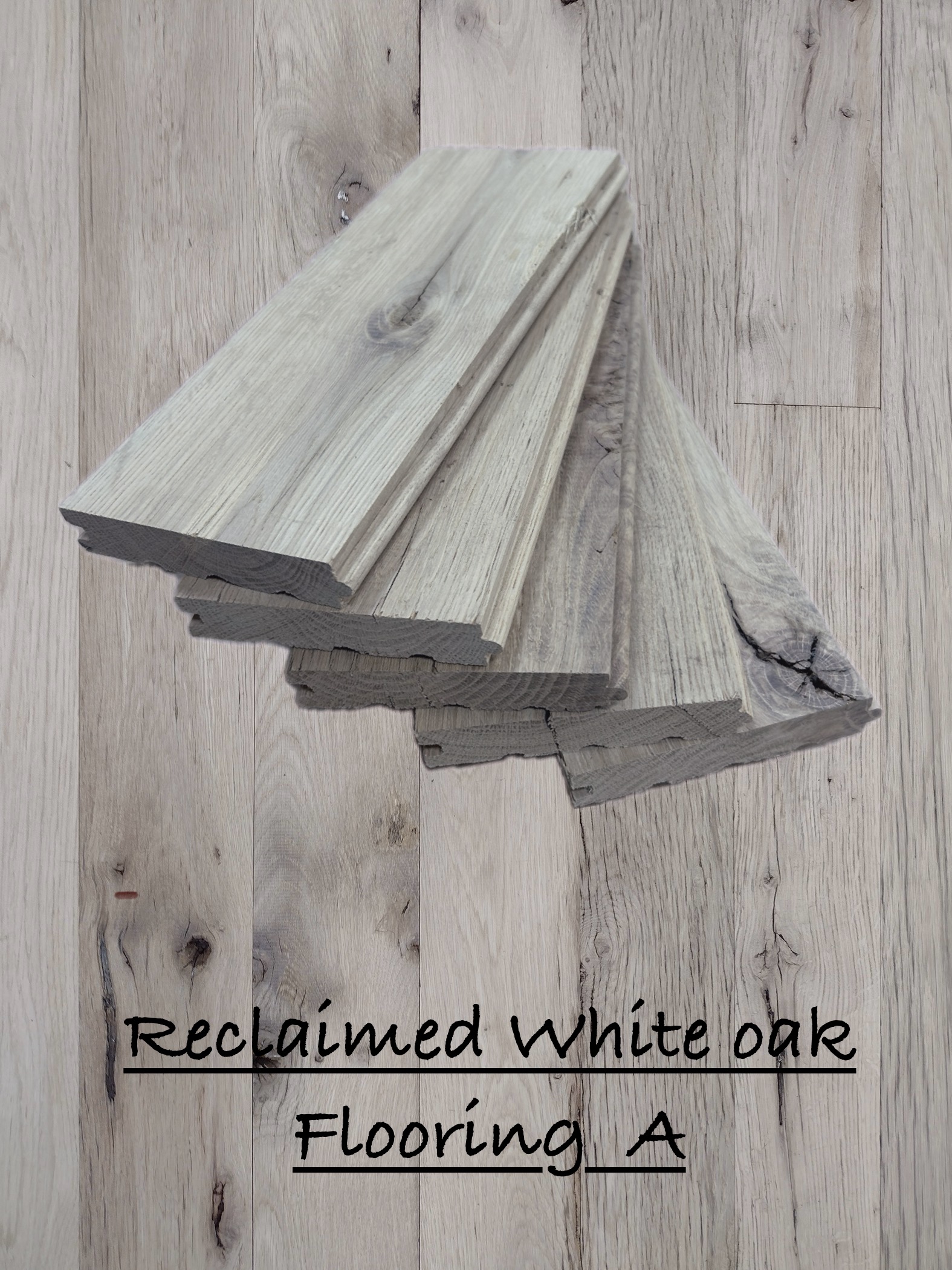 Reclaimed White Oak Flooring A, 5"-(500sf available), 4.5"-(11,000sf available) Prices starting @ $6.99, 4"-(3,000sf available) Prices starting @ $6.75, 3"-(2,000sf available) Prices starting @ $6.49