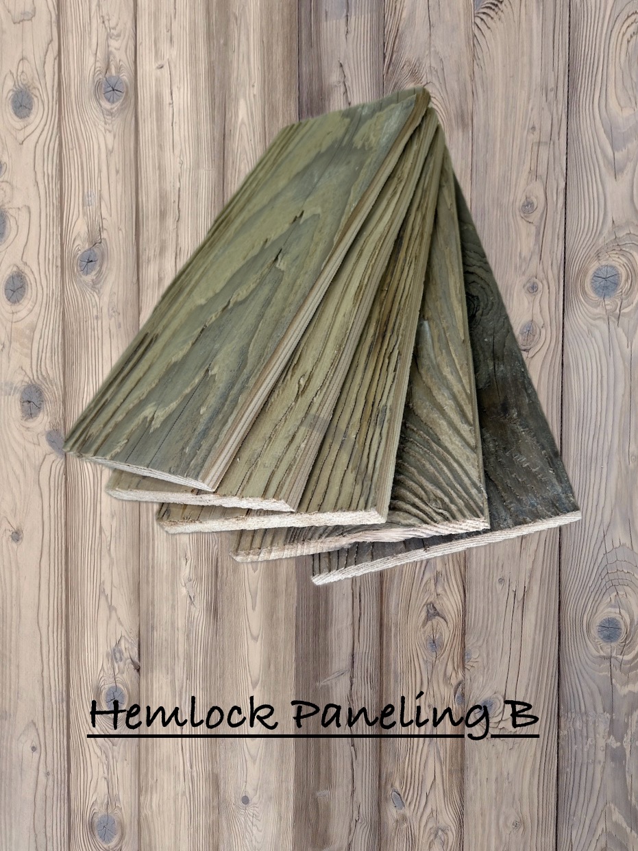 Hemlock Paneling B, 7"-(621sf available), 6"-(619sf available), 5"-(7,784sf available), 4"-(2,829sf available), 3"-(398sf available) Prices starting @ $4.99