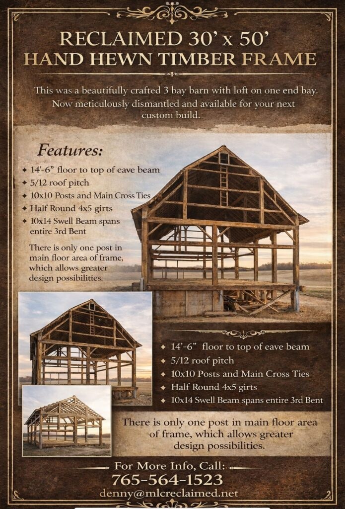 | Title: | "The Allen Barn" Vintage 30' x 50' Timber Frame |